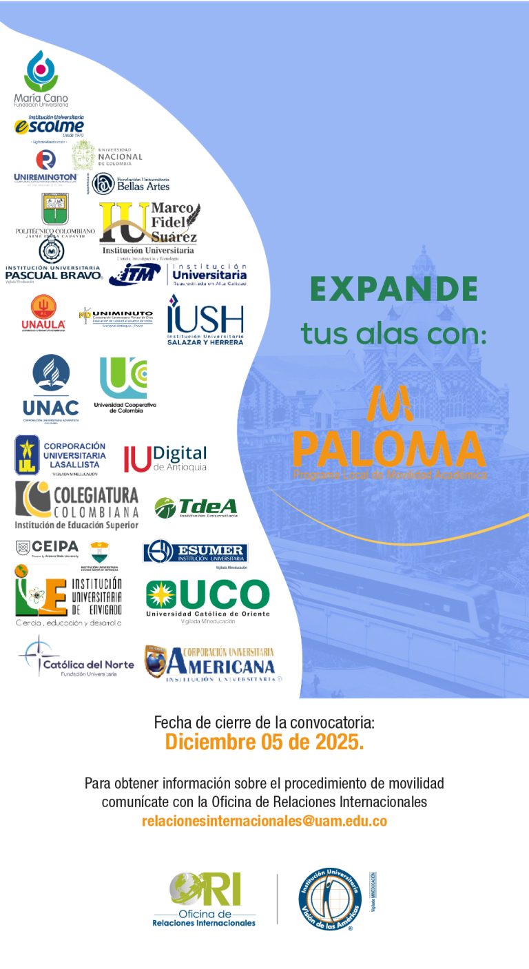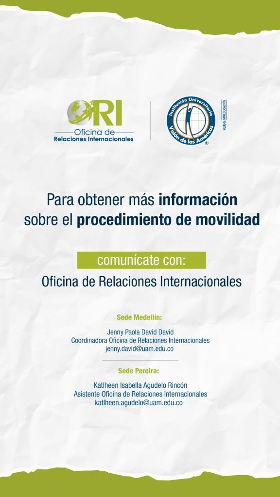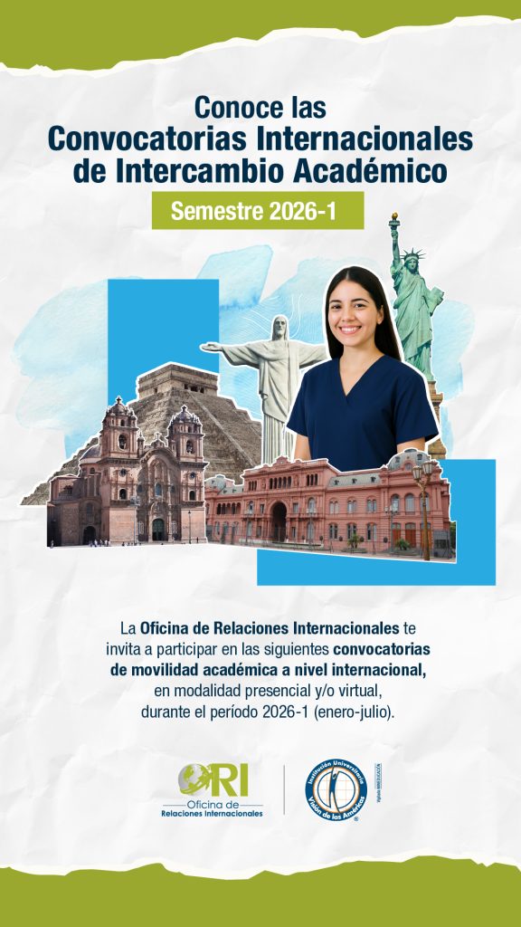 Convocatorias de Movilidad para estudiantes Haz clic aquí para más información del programa de apadrinamiento 2025 Convocatorias de intercambio académico Conoce más aquí Déjanos tu inquietudes aquí Nombres y Apellidos Programas PRÁCTICA NACIONAL E INTERNACIONAL APRENDIZAJE DE IDIOMAS INTERCAMBIO ACADÉMICO MISIONES ACADÉMICAS, EMPRESARIALES Y CULTURALES PARTICIPACIÓN EN EVENTOS ACADÉMICOS Y CIENTÍFICOS Semestre Correo Electrónico Teléfonos Enviar